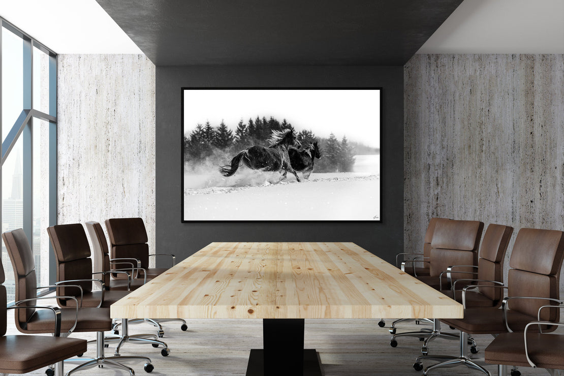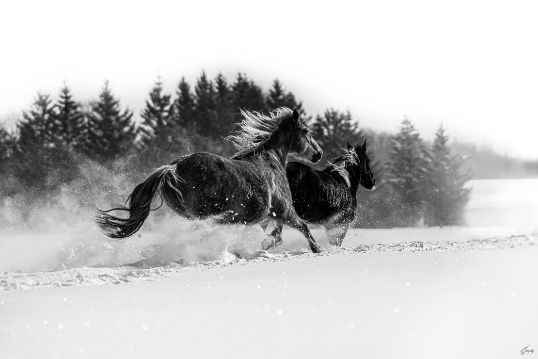 avec ce vaste décor nordique. C'est vers la fin de mon aventure avec ces chevaux que l'occasion de cette prise s'est présentée. Ayant réussi la photo de mes rêves, j'ai laissé de côté la planification, la concentration et la minutie pour savourer l'instant présent et simplement profiter du spectacle offert par les chevaux dans la neige. Mais je dois avouer que je n'ai pas pu résister longtemps…