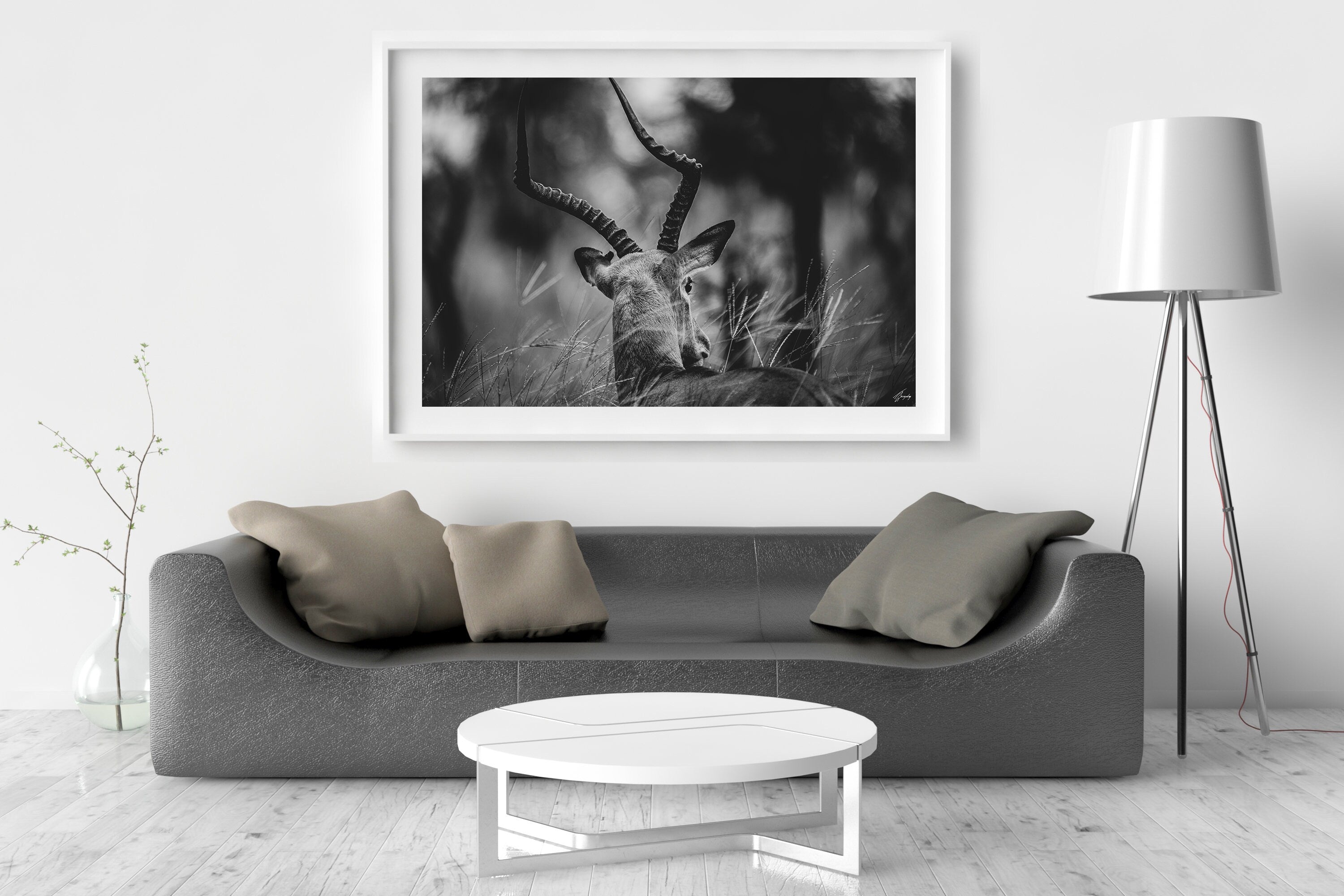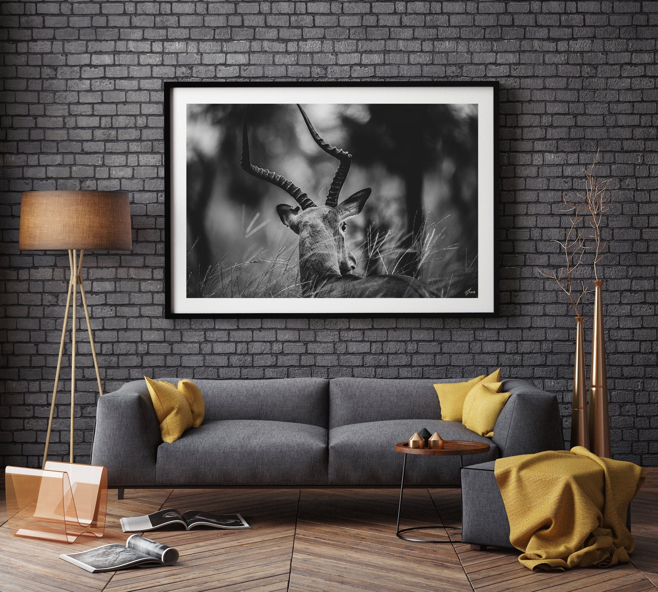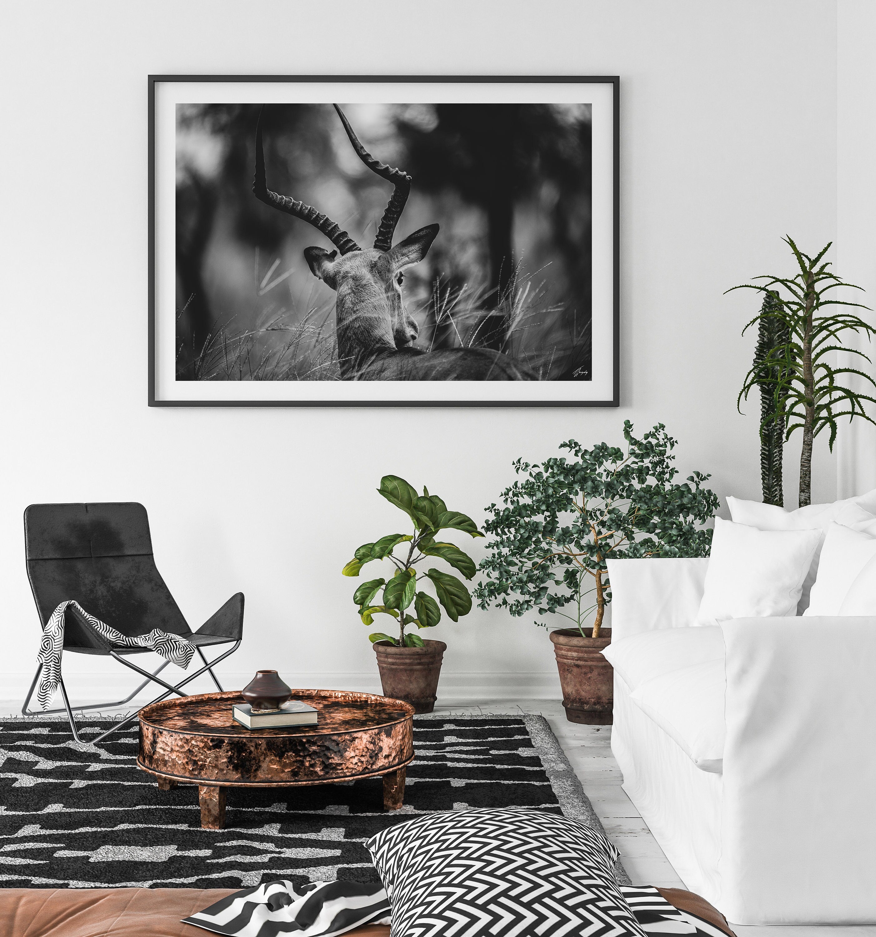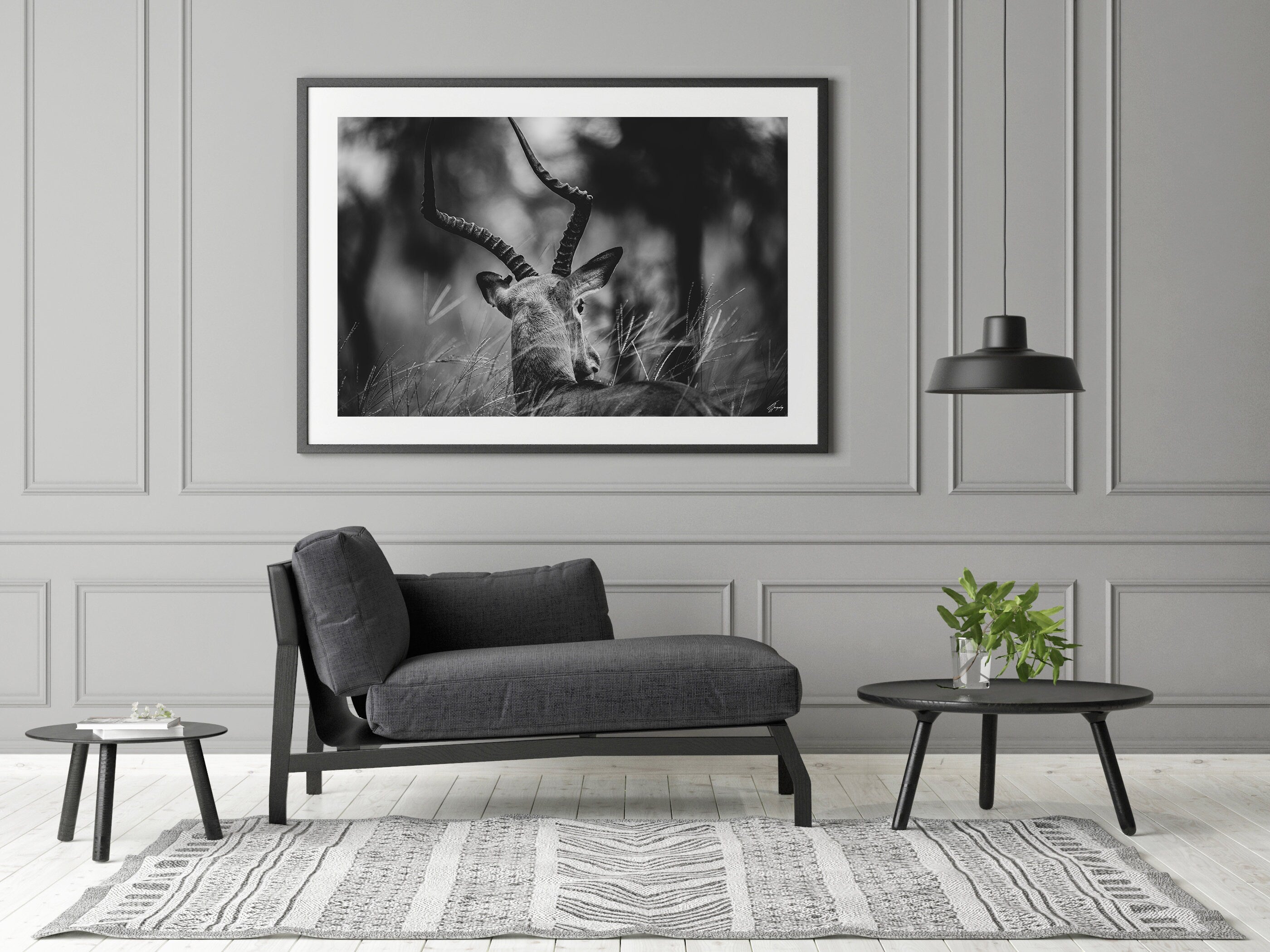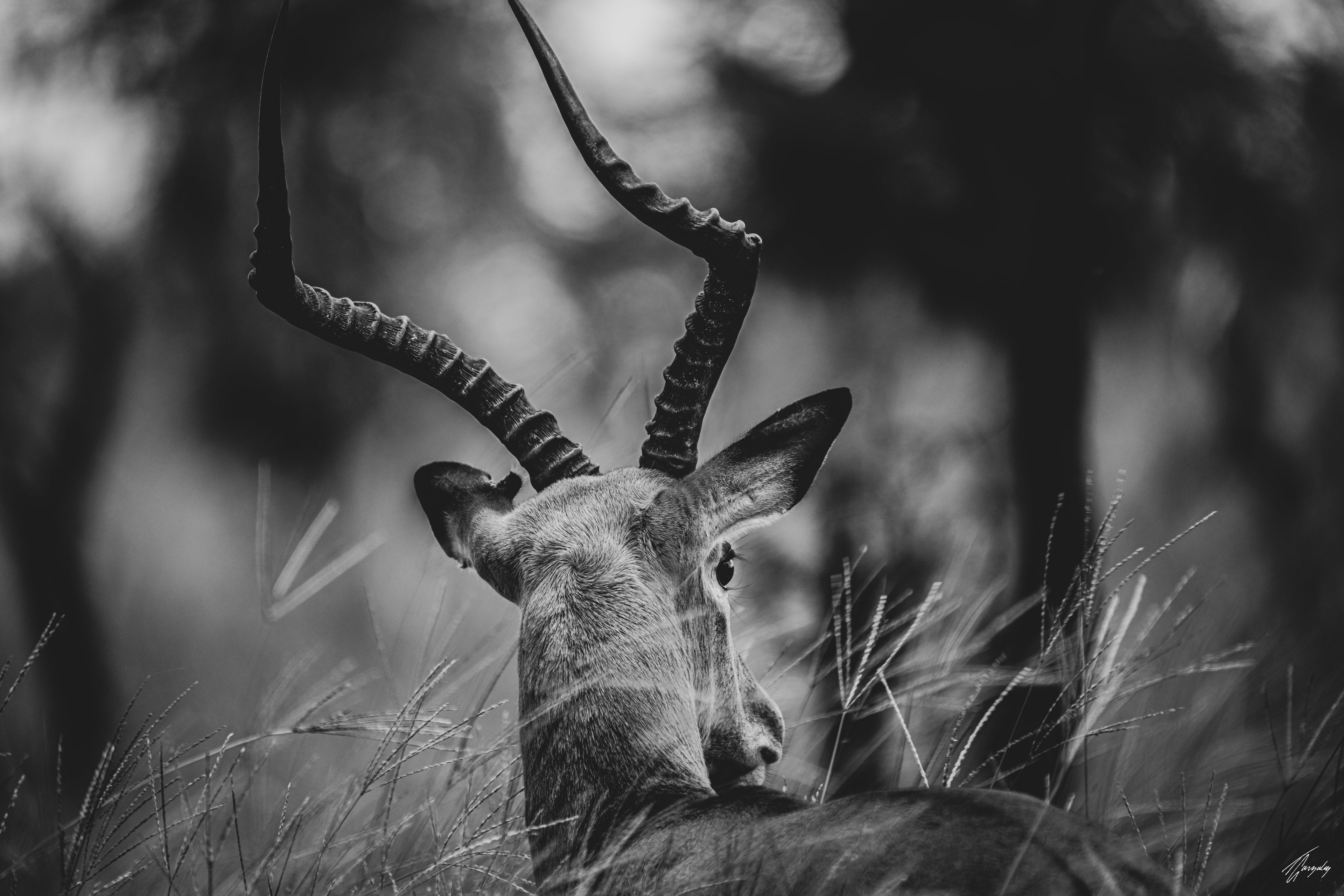 J'utilise souvent des antilopes dans mes photos pour symboliser la prudence et la vigilance. Celle-ci est l'une de mes préférées. Cet animal élégant a besoin d'avoir des yeux tout autour de la tête pour repérer le danger. Chaque ombre, chaque mouvement, chaque son peut être le dernier signe qu'il verra. Je me souviens encore de la douce brise dans la brousse, qui m'a offert ce magnifique premier plan. Hormis cette brise, aucun bruit, juste lui et moi. Voici mon portrait très artistique et significatif de cette gracieuse beauté de la nature.
