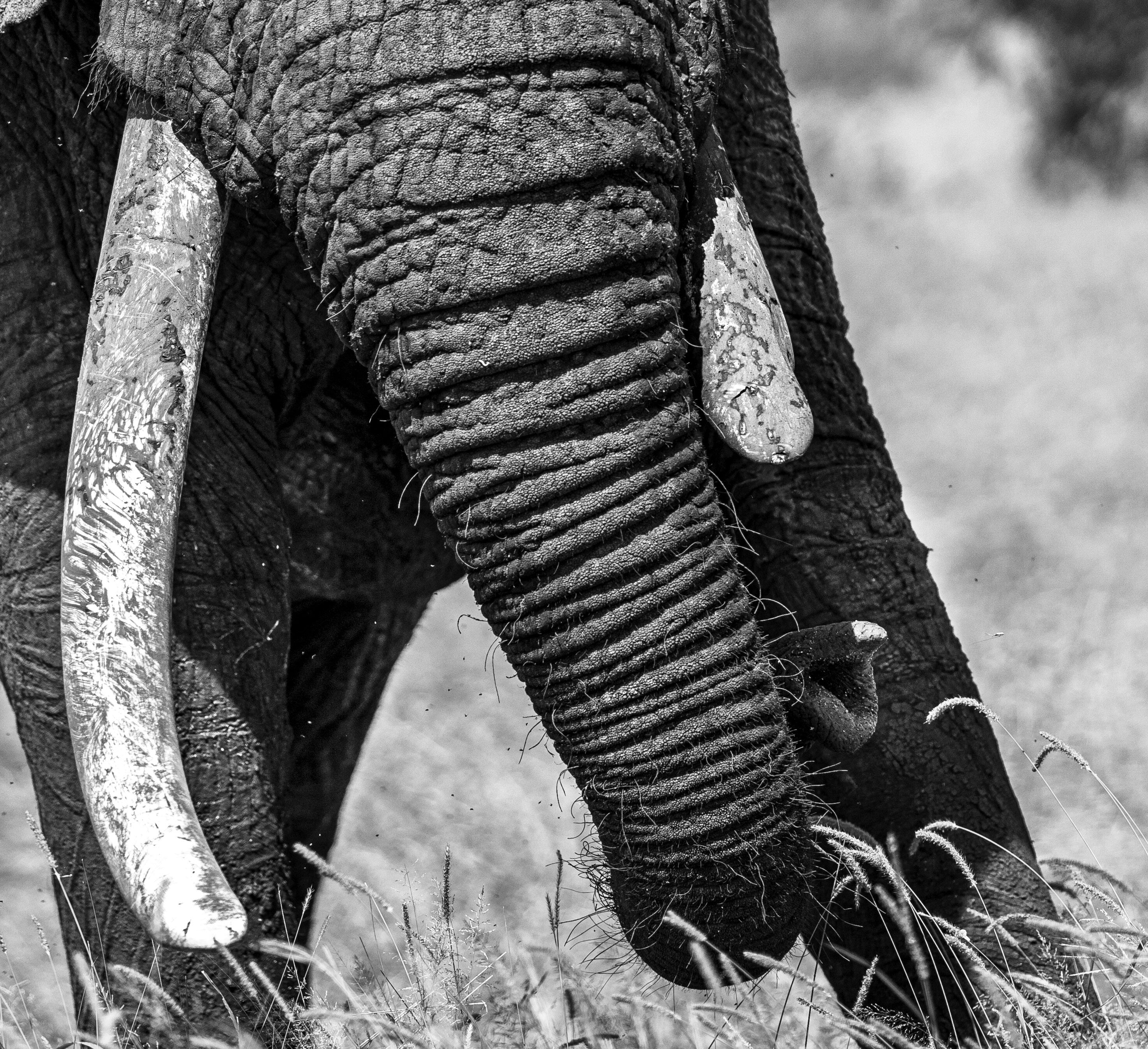 Toutes les 20 minutes, un éléphant est tué en Afrique du Sud pour ses défenses. Le noir et blanc illustre bien la tristesse de ce sombre constat ; à ce rythme, dans une quinzaine d'années, les éléphants auront disparu. De tous les animaux sauvages de la planète, l'homme est sans conteste le plus dangereux.
