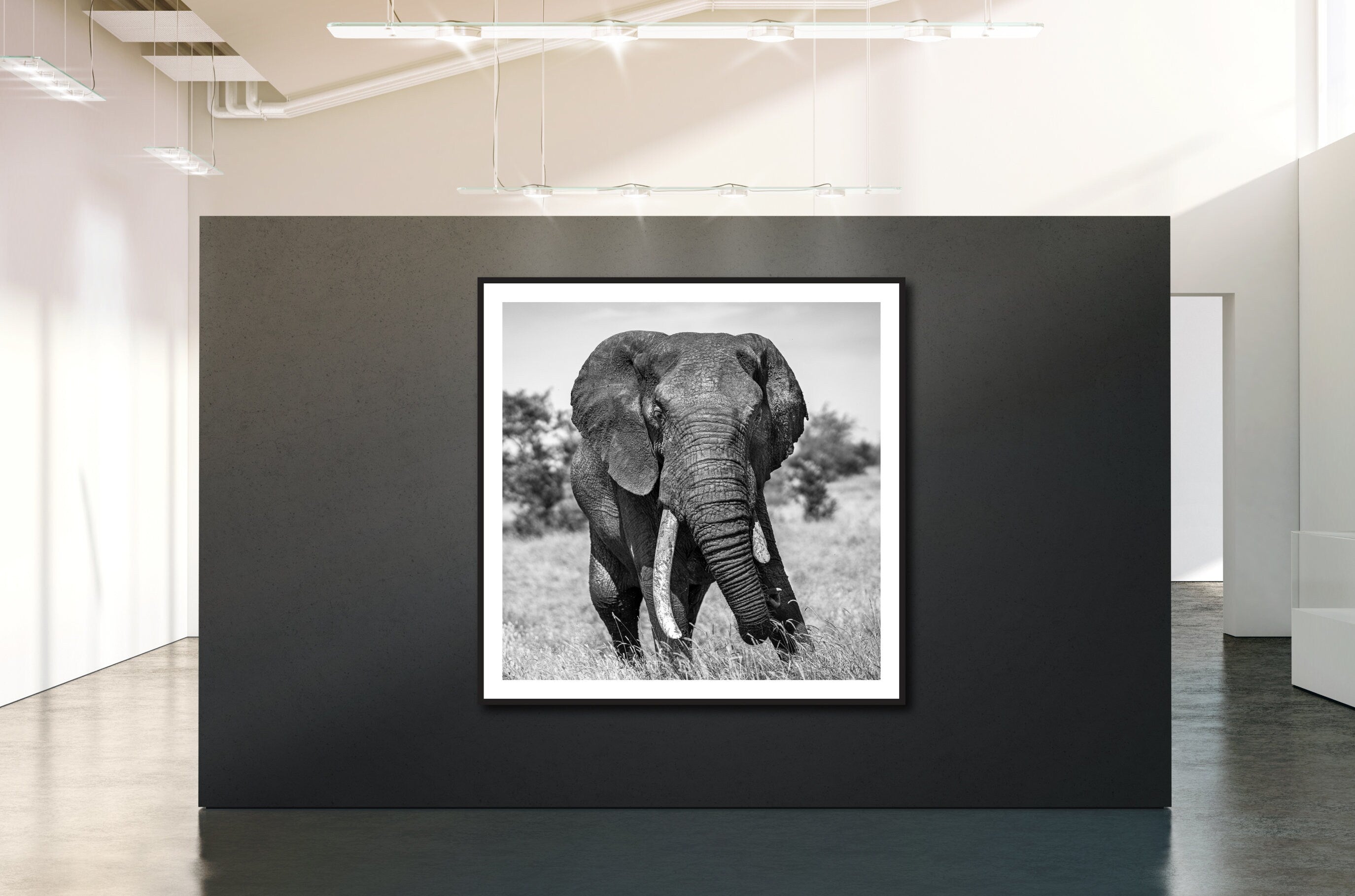 C'est une sensation incroyable lorsqu'un géant de cette stature s'approche du véhicule. Mon objectif était d'obtenir une photo d'éléphant exceptionnelle, que je puisse imprimer en très grand format sans perdre les détails de sa peau abîmée par des décennies sous le soleil africain. Pour cela, il me fallait un éléphant qui se démarque des autres : proximité, lumière, ajustements précis, angle esthétique et, surtout, le moins de mouvements possible. Le mastodonte s'est arrêté à moins de 10 mètres du véhicule et les étoiles se sont alignées pendant quelques secondes pour quatre photos à main levée de « Broken Tusk ».