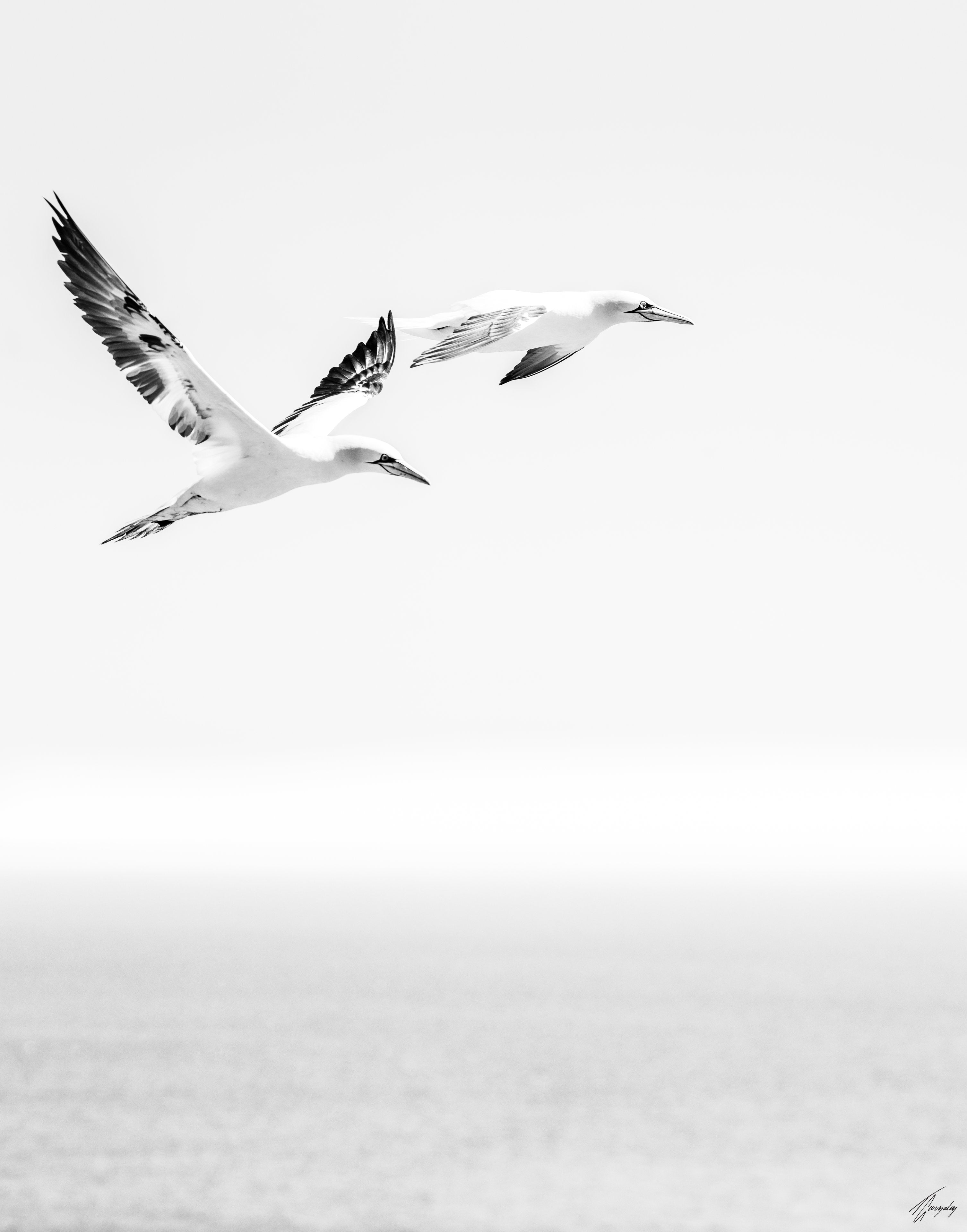 L'île Bonaventure, en Gaspésie, au Québec, est un endroit idéal pour photographier les fous de Bassan. J'aime ces oiseaux pour leur grâce, mais aussi pour le lien qui les unit. Symboles d'amour et de liberté.