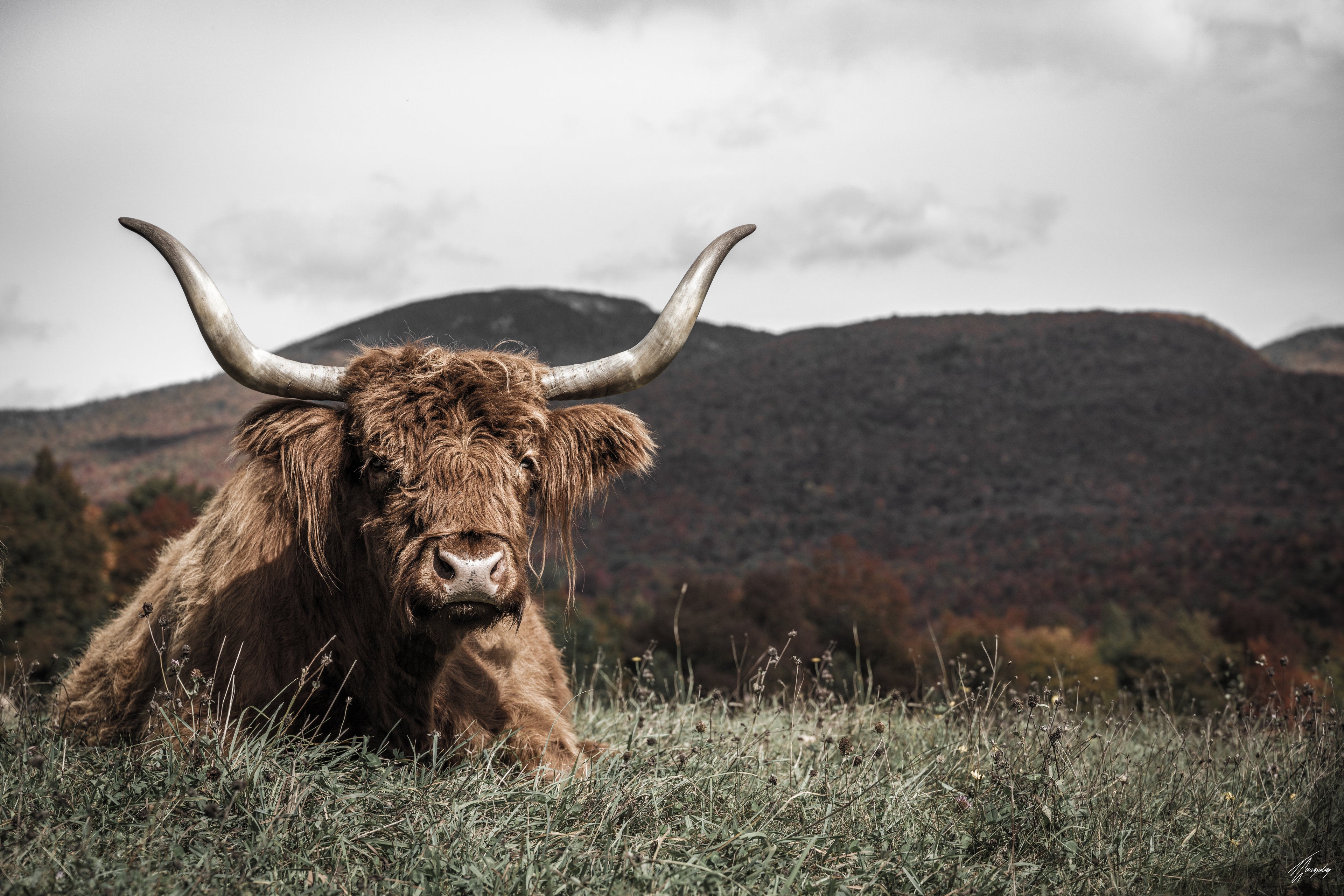 Je voulais photographier des vaches des Highlands depuis longtemps, mais je cherchais une image différente de ce qu’on voit habituellement. J’ai attendu le bon moment, en plein cœur de l’automne, pour profiter des couleurs chaudes et variées en arrière-plan. J’ai passé plusieurs heures avec elles, pour mieux comprendre leur comportement et trouver le bon endroit pour les photographier, avec les montagnes colorées en toile de fond. Pour ce portrait, j’ai choisi une prise de vue en contre-plongée et une proximité, afin de montrer un maximum de détails. Le résultat est une image chaleureuse et intime, qui reflète toute la tranquillité de ces animaux paisibles.