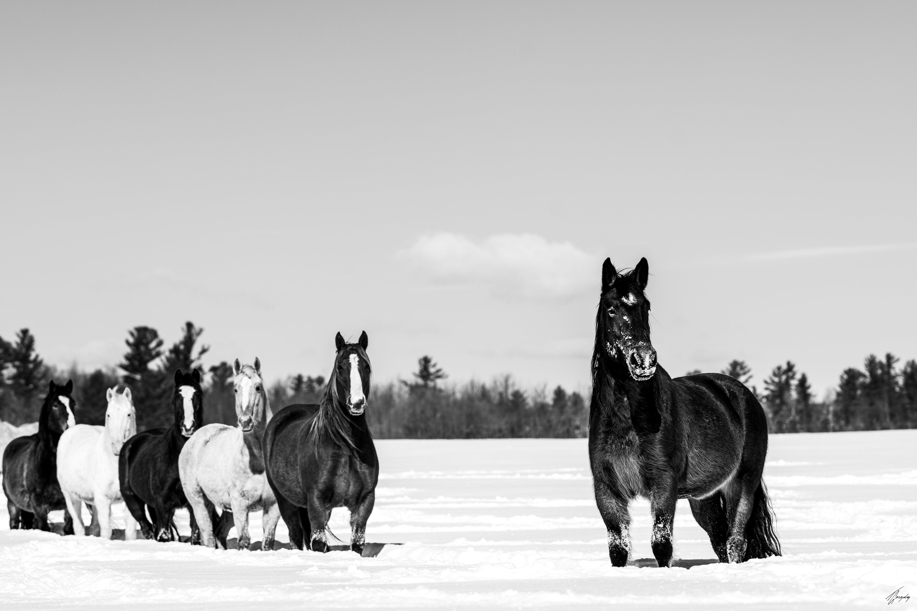 Cette photographie n'a pas été préparée. Après des jours de travail avec ces bêtes, j'ai gagné leur confiance et partagé avec elles des moments uniques. Comme celui des chevaux rassemblés face à moi, le plus courageux du groupe se tenant fièrement à leur tête. Pour ce genre de photos, j'aurais simplement espéré qu'aucune tête de cheval ne soit coupée…