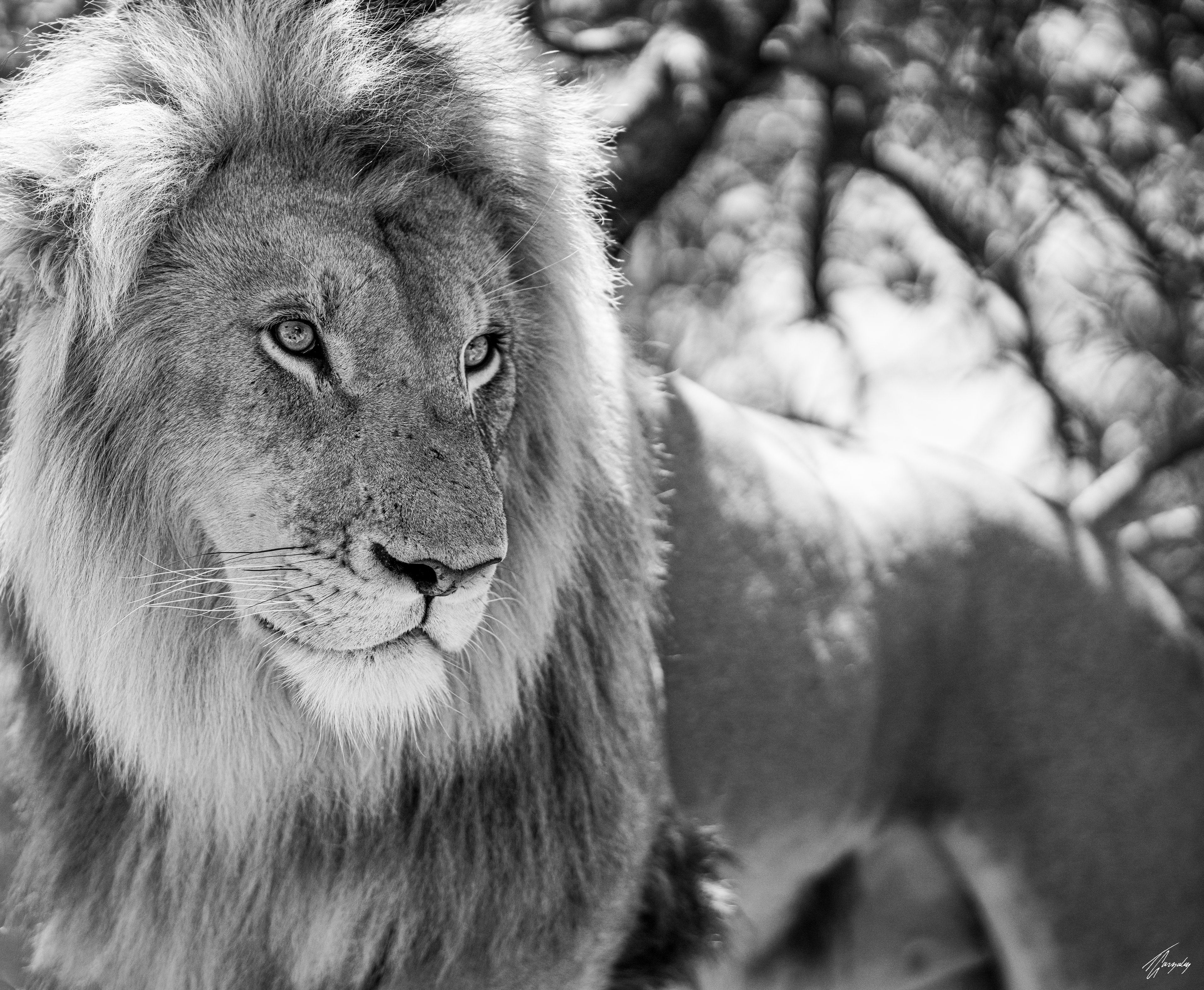 Pour des photos extrêmement détaillées, comme je les adore, la proximité est essentielle. Photographié à quelques mètres de distance avec un objectif 135 mm f/1.8, aucun poil de la tête de ce lion n'a échappé à mon objectif. Une image d'une netteté exceptionnelle, qui peut être imprimée à la taille réelle d'un lion sans perdre le moindre détail. L'espace d'un instant, j'ai eu accès à la cour du roi en Afrique du Sud !
