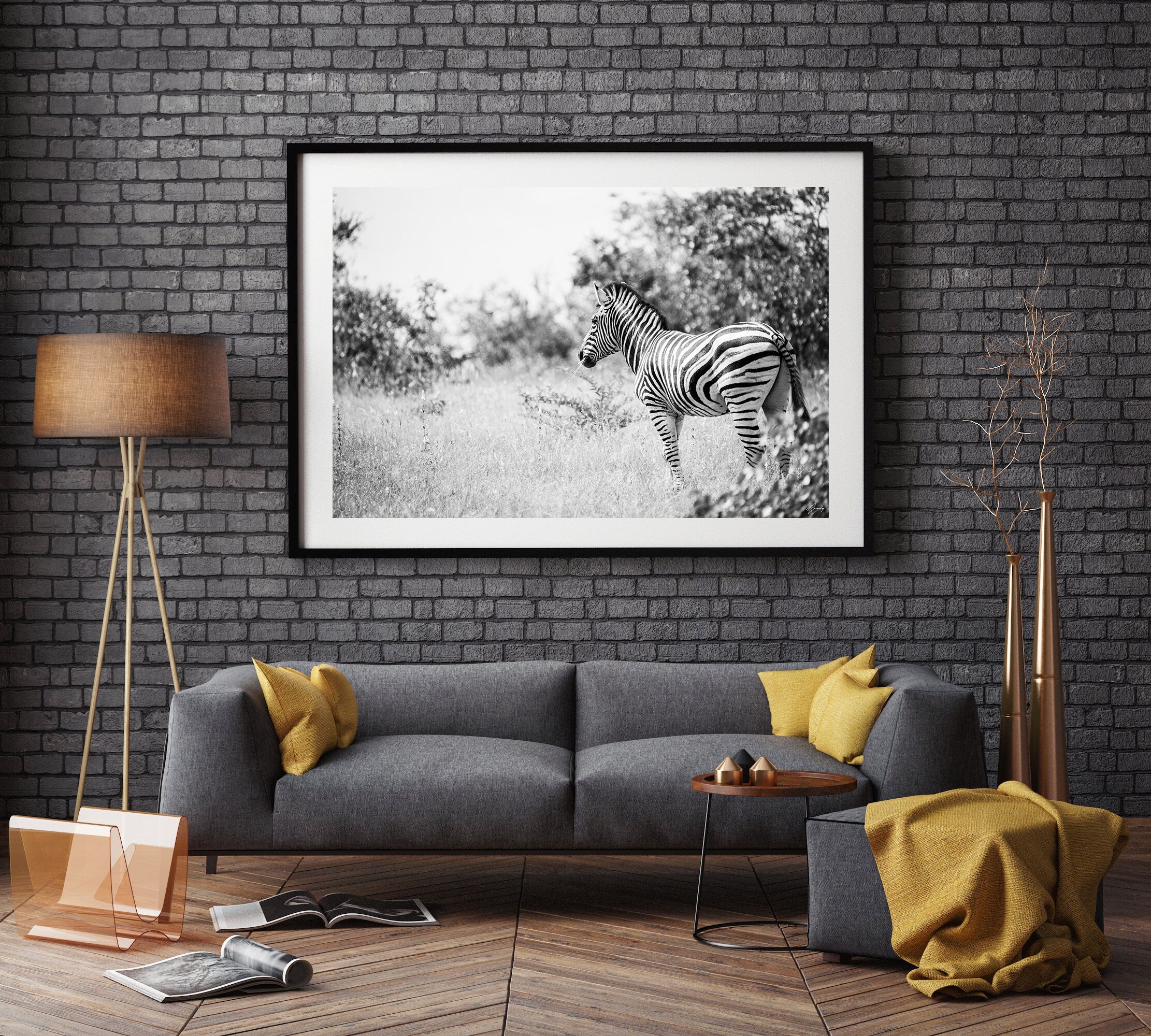 Une option populaire consiste à acheter une oeuvre sur papier beaux-arts sans cadre dans un format standard comme 30x20 ou 36x24, et à acheter un cadre standard chez un grand détaillant. Vous pouvez facilement encadrer vous-même votre oeuvre. Et n'oubliez pas : vous pouvez nous demander de personnaliser le format et la bordure blanche pour correspondre aux dimensions de votre cadre.