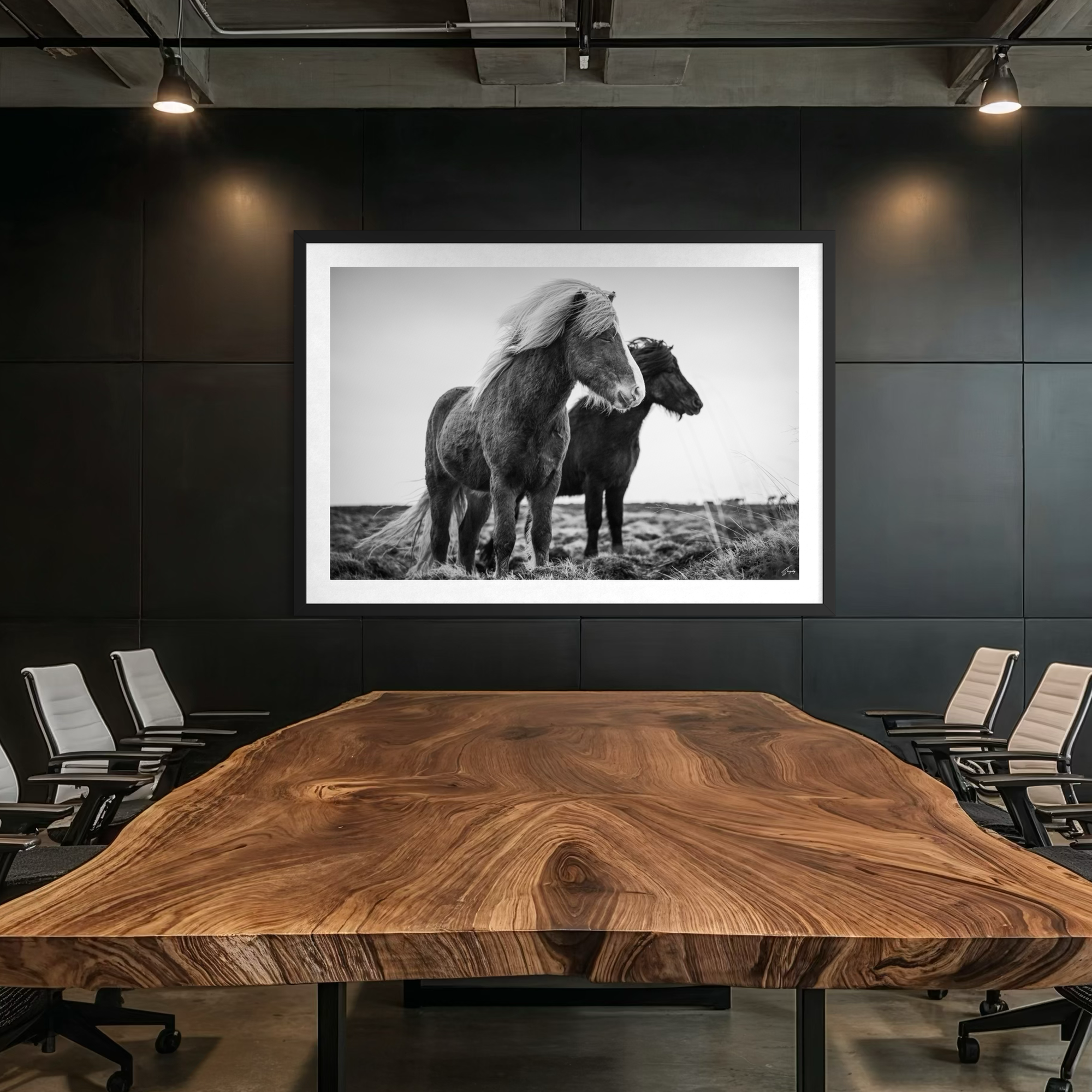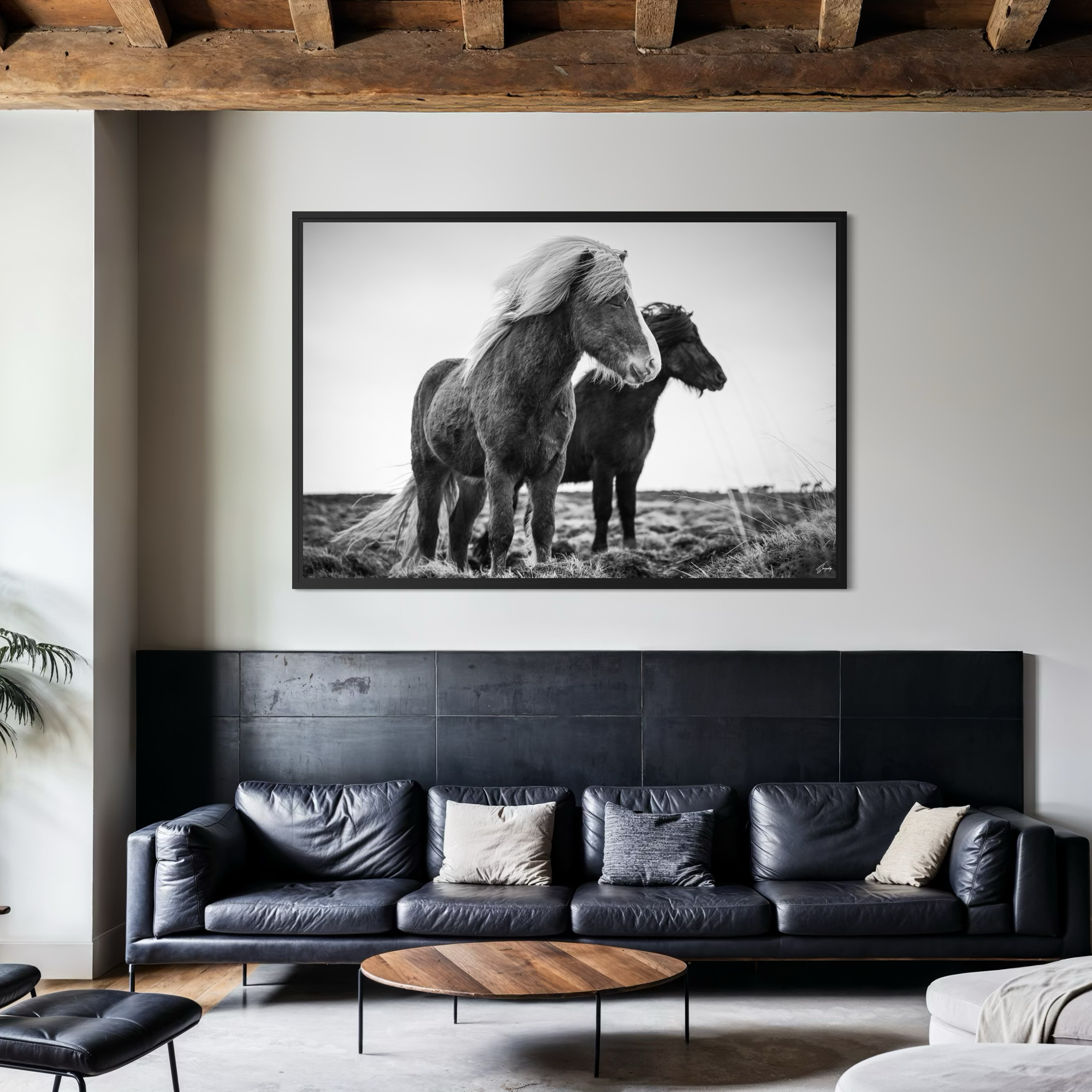 Two horses are gently rocked by the wind, their manes flowing as if in a dream. With their eyes closed, they seem suspended in a moment of pure tranquility, completely at peace with the world around them. Dream captures this delicate harmony where nature, the wind, and the horses breathe in unison… a moment of absolute harmony.